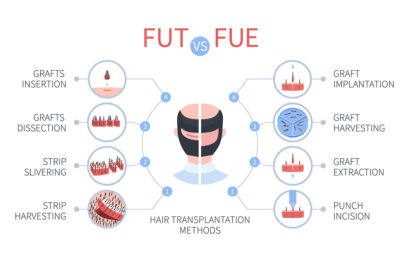 FUE vs FUT hair transplantation medical infographics